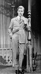 Sondheim later expressed his view of de Mille's directing, calling her "a horror. She treated the actors and singers like dirt and treated the dancers like gods ...[she was,] I think, an extremely insensitive woman, an excellent writer, and a terrible director, in terms of morale, anyway. That was my first experience of bad behavior in the theatre."[12] However, Rufus Smith, who played the minor role of the football coach, stated, "Never again in my life will I experience what it is like to stop a show cold, by doing exactly what she taught me".[13] The immense job of directing the play finally proved too big for de Mille, who stated "I can't do the new dances and the new songs and the new book," and Hammerstein stepped in to direct the dialogue.[7] According to Rodgers biographer Meryle Secrest, at this point the cast was up in arms over de Mille's treatment of them.[14] James Mitchell, one of the dancers in the production, later stated that de Mille was better at directing dancers than actors, as actors come to the stage with preconceived notions about how to play a part, and dancers do not.[13]