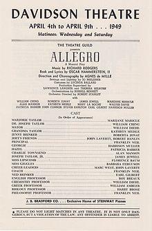 - ^ "Allegro Broadway @ Majestic Theatre - Tickets and Discounts". Playbill. Retrieved 2020-03-24.
