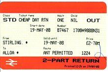 In 2008, the railway reopened, with a new Alloa station situated to the east of its predecessor, due to the earlier construction of the leisure centre. A passenger-operated self-service ticket machine was installed in July 2008; the illustrated ticket was issued at Stirling station.