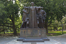 Modern sculptures are found in prominent locations on several American university campuses. For example, there is a bronze statue of Alma Mater by Daniel Chester French situated on the steps of Columbia University's Low Library; the University of Illinois at Urbana–Champaign also has an Alma Mater statue by Lorado Taft. An altarpiece mural in Yale University's Sterling Memorial Library, painted in 1932 by Eugene Savage, depicts the Alma Mater as a bearer of light and truth, standing in the midst of the personified arts and sciences.