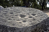 About a dozen monoliths exhibit some form of carved drawings,[1] of which four exhibit only small circular holes. Monolith number 8, with a cut flat top at about breast level and showing several dimples, might have served for finer astronomical observation, specially spring equinox observation, by putting small stones on the dimples. These observations might also be made from stone 39, on the eastern focal point of the elliptic layout.[3] Menhir 48, also exhibits a schematized anthropomorphic representation, surrounded by circles and associated with a crozier.[1]