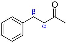Organic molecules with more than one functional group can be a source of confusion. Generally the functional group responsible for the name or type of the molecule is the 'reference' group for purposes of carbon-atom naming. For example, the molecules nitrostyrene and phenethylamine are very similar; the former can even be reduced into the latter. However, nitrostyrene's α-carbon atom is adjacent to the phenyl group; in phenethylamine this same carbon atom is the β-carbon atom, as phenethylamine (being an amine rather than a styrene) counts its atoms from the opposite "end" of the molecule.[1]