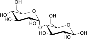 Alpha-glucosidase (EC 3.2.1.20, maltase, glucoinvertase, glucosidosucrase, maltase-glucoamylase, alpha-glucopyranosidase, glucosidoinvertase, alpha-D-glucosidase, alpha-glucoside hydrolase, alpha-1,4-glucosidase, alpha-D-glucoside glucohydrolase) is a glucosidase located in the brush border of the small intestine that acts upon α(1→4) bonds.[1][2][3][4][5][6] This is in contrast to beta-glucosidase. Alpha-glucosidase breaks down starch and disaccharides to glucose. Maltase, a similar enzyme that cleaves maltose, is nearly functionally equivalent.