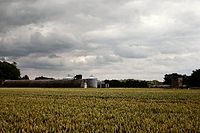 - Ancient rolling farmlands – This is a rolling arable landscape of chalky clays and loams. The enclosure over a lot of the landscape retains much of the organic pattern of ancient and species-rich hedgerows and associated ditches. There are however some areas of field amalgamation and boundary loss, especially on the interfluves between the small valleys. The settlement pattern is dispersed farmsteads of mediaeval origin interspersed with some larger hamlets and occasional villages. The farms are large but are mainly owner-occupied rather than estate owned. The hedgerow trees are of typical clayland composition: oak, ash and field maple, with suckering elm. Although there are some areas of extensive field amalgamation, overall the landscape is largely intact, and accessible thorough a dense network of winding roads with wide verges.[14]