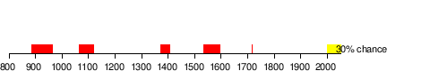 The Māori arrived in New Zealand c.1300 but never reached a high population density in the colder South Island.[10] So while earthquakes are an important part of Māori oral tradition, no stories have been passed down about South Island earthquakes.[11] Over the last thousand years, there have been four major ruptures along the Alpine Fault causing earthquakes of about magnitude 8. These had previously been determined to have occurred in approximately 1100, 1430, 1620 and 1717 CE, at intervals between 100 and 350 years.[12] The 1717 quake appears to have involved a rupture along nearly 400 kilometres (250 mi) of the southern two-thirds of the fault. Scientists say that a similar earthquake could happen at any time as the interval since 1717 is longer than between the earlier events.[13] Newer research carried out by the University of Otago and the Australian Nuclear Science and Technology Organisation revised the dates of the pre-1717 earthquakes to between 1535 and 1596 (instead of 1620), 1374 and 1405 (instead of 1430), and 1064 and 1120 (instead of 1100). In addition, an earlier earthquake was identified to have occurred between 887 and 965.[14]