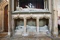 The cadaver tomb of Bishop Richard Fleming in Lincoln Cathedral. He is depicted as if alive at the top; the lower effigy shows his decaying corpse in a shroud (1431).