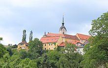 A Catholic church was first mentioned in 1307, then under the auspices of the Friesach parish. The present-day parish church with its massive steeple is the only one in Carinthia dedicated to Saint Thomas of Canterbury, it was built about 1400, with Baroque ornamentation in the 18th century and Neo-Gothic embellishment in 1908–10.