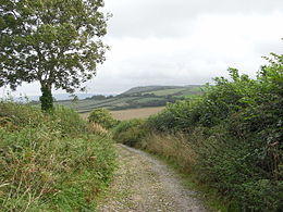 Evidence of prehistoric human activity within the parish includes two round barrows on the hills to the east of the village (one on West Hill and one on Church Hill), the remains of 'Celtic' fields and strip lynchets on many of the surrounding hills, and a possible settlement just south of the summit of Church Hill. Dating is not definite but the 'Celtic' fields were probably in use between the Bronze Age and the end of the Romano-British period. The possible settlement is probably Romano-British. Subsequent cultivation, particularly in modern times, has destroyed much of the evidence.[3][4]