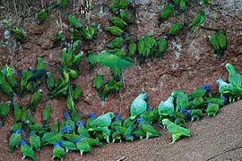 Parrots at clay lick in Yasuni National Park, Ecuador