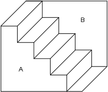 When we see an image, the first thing we do is attempt to organize all the parts of the scene into different groups.[6] To do this, one of the most basic methods used is finding the edges. Edges can include obvious perceptions such as the edge of a house, and can include other perceptions that the brain needs to process deeper, such as the edges of a person's facial features. When finding edges, the brain's visual system detects a point on the image with a sharp contrast of lighting. Being able to detect the location of the edge of an object aids in recognizing the object. In ambiguous images, detecting edges still seems natural to the person perceiving the image. However, the brain undergoes deeper processing to resolve the ambiguity. For example, consider an image that involves an opposite change in magnitude of luminance between the object and the background (e.g. From the top, the background shifts from black to white, and the object shifts from white to black). The opposing gradients will eventually come to a point where there is an equal degree of luminance of the object and the background. At this point, there is no edge to be perceived. To counter this, the visual system connects the image as a whole rather than a set of edges, allowing one to see an object rather than edges and non-edges. Although there is no complete image to be seen, the brain is able to accomplish this because of its understanding of the physical world and real incidents of ambiguous lighting.[5]