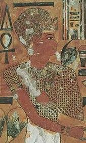 Amenhotep I was the son of Ahmose I and Ahmose-Nefertari. His elder brothers, the crown prince Ahmose Sapair and Ahmose-ankh, died before him, thus clearing the way for his ascension to the throne.[9] Amenhotep probably came to power while he was still young himself, and his mother, Ahmose-Nefertari, appears to have been regent for him for at least a short time.[10] The evidence for this regency is that both he and his mother are credited with founding a settlement for workers in the Theban Necropolis at Deir el-Medina.[10] Amenhotep took his older sister, Ahmose-Meritamon, as his Great Royal Wife.[11] Another wife's name, Sitkamose, is attested on a nineteenth dynasty stele.[12]