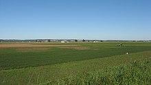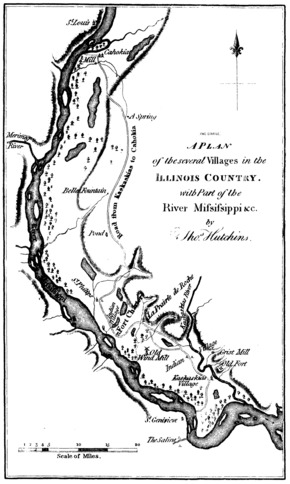 The American Bottom is the flood plain of the Mississippi River in the Metro-East region of Southern Illinois, extending from Alton, Illinois, south to the Kaskaskia River. It is also sometimes called "American Bottoms". The area is about 175 square miles (450 km2), mostly protected from flooding in the 21st century by a levee and drainage canal system. Immediately across the river from St. Louis, Missouri, are industrial and urban areas, but many swamps and the major Horseshoe Lake are reminders of the Bottoms' riparian nature. This plain served as the center for the pre-Columbian Cahokia Mounds civilization, and later the French settlement of Illinois Country. Deforestation of the river banks in the 19th century to fuel steamboats had dramatic environmental effects in this region. The Mississippi River between St. Louis and the confluence with the Ohio River became wider and more shallow, as unstable banks collapsed into the water.[1] This resulted in more severe flooding and lateral changes of the major channel, causing the destruction of several French colonial towns, such as Kaskaskia, which relocated; Cahokia, and St. Philippe, Illinois.