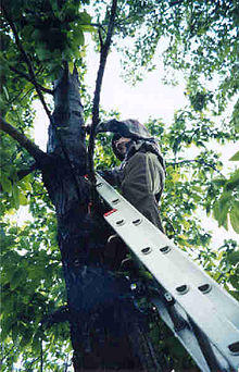 Griffin developed a scale for assessing levels of blight resistance, which made it possible to make selections scientifically. He inoculated five-year-old chestnuts with a standard lethal strain of the blight fungus and measured growth of the cankers. Chestnuts with no resistance to blight make rapid-growing, sunken cankers that are deep and kill tissue right to the wood. Resistant chestnuts make slow-growing, swollen cankers that are superficial: live tissue can be recovered under these cankers. The level of blight resistance is judged by periodic measurement of cankers.