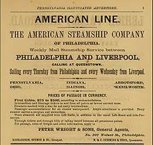 The American Line was a shipping company founded in 1871 and based in Philadelphia, Pennsylvania. It began as part of the Pennsylvania Railroad, although the railroad got out of the shipping business soon after founding the company. In 1902, it became part of the International Navigation Co., with the American Line generally handling traffic between the United States ports of Philadelphia and New York City and the British ports of Liverpool and Southampton. Sister company Red Star Line handled traffic between America and the European continent, primarily through Antwerp, Belgium. The company's most prominent president was Clement Griscom, who led the company from 1888 to 1902 and worked as a company executive for its entire existence. During its existence, the company was the largest American shipping company, rivalled only by the smaller, Baltimore-based Atlantic Transport Lines, although this distinction is a marginal one, as all American oceanic shipping concerns were dwarfed by British companies such as the White Star Line or Cunard Line and German ones such as HAPAG.