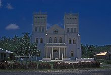 Mission work in the Samoas had begun in late 1830 when John Williams of the London Missionary Society arrived from the Cook Islands and Tahiti.[17] By the late nineteenth century, French, British, German, and American vessels routinely stopped at Samoa, as they valued Pago Pago Harbor as a refueling station for coal-fired shipping and whaling.