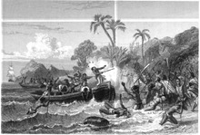 On December 10, 1787, French navigator Jean-François de Galaup, comte de Lapérouse landed two exploration parties on Tutuila's north shore: one from the ship La Boussole at Fagasa, and the other from L'Astrolabe at Aʻasu. One of the cooks, David, died of "scorbutic dropsy". On December 11, twelve members of Lapérouse's crew (including First Officer Paul Antoine Fleuriot de Langle) were killed by angry Samoans at Aʻasu Bay, Tutuila, thereafter known as "Massacre Bay", which Lapérouse described as "this den, more fearful from its treacherous situation and the cruelty of its inhabitants than the lair of a lion or a tiger". This incident gave Samoa a reputation for savagery that kept Europeans away until the arrival of the first Christian missionaries four decades later. On December 12, at Aʻasu Bay, Lapérouse ordered his gunners to fire one cannonball in the midst of the attackers who had killed his men the day before, and were now returning to launch another attack. He later wrote in his journal "I could have destroyed or sunk a hundred canoes, with more than 500 people in them: but I was afraid of striking the wrong victims; the call of my conscience saved their lives."[38][39]