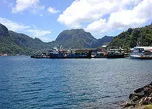 The following year, the U.S. formally annexed its portion, a smaller group of eastern islands, one of which contains the noted harbor of Pago Pago.[23] After the United States Navy took possession of eastern Samoa for the United States government, the existing coaling station at Pago Pago Bay was expanded into a full naval station, known as United States Naval Station Tutuila and commanded by a commandant. The Navy secured a Deed of Cession of Tutuila in 1900 and a Deed of Cession of Manuʻa in 1904 on behalf of the U.S. government. The last sovereign of Manuʻa, the Tui Manuʻa Elisala, signed a Deed of Cession of Manuʻa following a series of U.S. naval trials, known as the "Trial of the Ipu", in Pago Pago, Taʻu, and aboard a Pacific Squadron gunboat.[24] The territory became known as the U.S. Naval Station Tutuila.