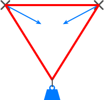 A two-point climbing anchor requires three carabiners: one at each fixed point and one at the "master point" where the load is transferred to the climbing rope. The aim is to distribute the force equally to each fixed point. A triangle anchor is formed by clipping a length of webbing or cord through all three carabiners, creating a shape which gives the dangerous anchor its descriptive name.