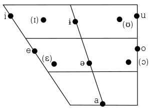 | ä/e [ə] | u | i | a | ē | ə [ɨ], ∅ | o | ʷ/ue [ʷə/ū] | ʷi/ui | ʷa/ua | ʷē/uē | ʷə [ʷɨ/ū] | ||