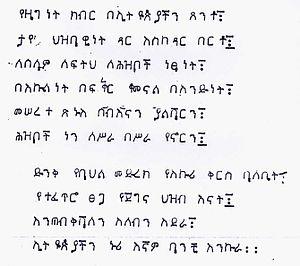 - ^ Mittwoch, Eugen. 1907. "Proben aus dem amharischen Volksmund", Mittheilungen des Seminars für Orientalische Sprachen zu Berlin 10(2), pp. 185–241.