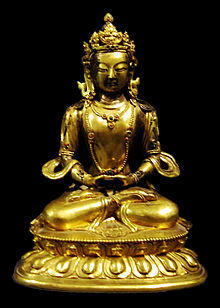 Amitābha[2] (Sanskrit pronunciation: [ɐmɪˈtaːbʱɐ]), also known as Amida or Amitāyus, is a celestial buddha according to the scriptures of Mahayana Buddhism.