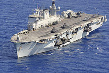An amphibious assault ship is a type of amphibious warfare ship employed to land and support ground forces on enemy territory by an amphibious assault.[1] The design evolved from aircraft carriers converted for use as helicopter carriers (and, as a result, are often mistaken for conventional fixed-wing aircraft carriers). Modern ships support amphibious landing craft, with most designs including a well deck. Coming full circle, some amphibious assault ships also support V/STOL fixed-wing aircraft, now having a secondary role as aircraft carriers.[2][3]