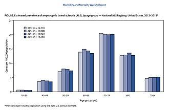 - ^ Couratier P, Corcia P, Lautrette G, Nicol M, Preux P, Marin B (January 2016). "Epidemiology of amyotrophic lateral sclerosis: A review of literature". Neuroepidemiology. 172 (1): 37–45. doi:10.1016/j.neurol.2015.11.002. PMID 26727307.