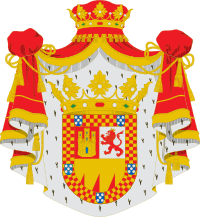 The ducal coat of arms of the Andalusian dukes of Osuna, after the Portuguese Secession of 1640 from the Spanish Habsburg, reminding their linkage to the new Portuguese Royal House of Braganza – the first Braganza king, John IV of Portugal (1603–1656), was the son of Teodósio II, Duke of Braganza, (1568–1630) and Ana de Velasco y Girón, older daughter of Juan Fernández de Velasco, 5th Duke of Frías (1550–1634), and granddaughter of Pedro Téllez-Girón, 1st Duke of Osuna and Viceroy of Naples