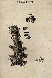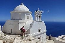 The island was used as a place of internal exile for criminals and political dissidents from the 1920s onward.[12] Tourism developed in the 1970s, particularly after an electricity generator was built in 1974, and harbour works were undertaken. The building of paved roads from the late 1980s onwards not only increased tourism but revived the island's agricultural economy. There are numerous publications relating to the island from the mid-1960s (see books and articles by Margaret Kenna[13]) and her photographs of the island and migrant communities over the decades since 1966 have been deposited in the Benaki Museum Photographic Archive (located in Kolonaki Square - Filikis Etaireias 15).