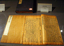 The old text version got its name because it was written in characters not used since the earlier Warring States period (i.e. before 221 BC), when it was assumed to have been hidden.[12] According to the Han dynasty scholar Huan Tan, the old text version had four hundred characters different from the Lu version (from which the received text of the Analects is mostly based), and it seriously differed from the Lu version in twenty-seven places. Of these twenty-seven differences, the received text only agrees with the old text version in two places.[13]
