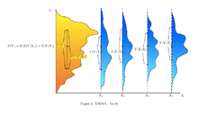 In the illustrations to the right, groups are identified as X1, X2, etc. In the first illustration, the dogs are divided according to the product (interaction) of two binary groupings: young vs old, and short-haired vs long-haired (e.g., group 1 is young, short-haired dogs, group 2 is young, long-haired dogs, etc.). Since the distributions of dog weight within each of the groups (shown in blue) has a relatively large variance, and since the means are very similar across groups, grouping dogs by these characteristics does not produce an effective way to explain the variation in dog weights: knowing which group a dog is in doesn't allow us to predict its weight much better than simply knowing the dog is in a dog show. Thus, this grouping fails to explain the variation in the overall distribution (yellow-orange).