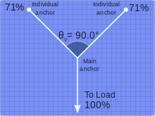 - At a V-angle of 30 degrees, each of the two anchors will bear a force of about 52% of the original load.