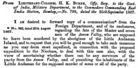 Snippet: "Immediately afterwards in another visit to Little Andaman to trace the sailors of a ship named 'Assam Valley' wrecked on its coast, Homfray's party was attacked by a large group of Onges."