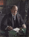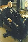 Zorn traveled extensively to London, Paris, the Balkans, Spain, Italy and the United States, becoming an international success as one of the most acclaimed painters of his era.[1] It was primarily his skill as a portrait painter that gained Zorn international acclaim based principally upon his incisive ability to depict the individual character of his model.[1] His subjects included three American Presidents, one of whom was Grover Cleveland in 1899, as well as his wife, along with William H. Taft and Theodore Roosevelt. At 29, he was made a Chevalier de la Légion d'honneur at the Exposition Universelle 1889 Paris World Fair.[4]