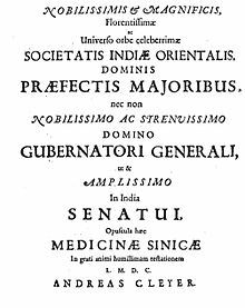 - ^ http://www.univie.ac.at/Geschichte/China-Bibliographie/blog/2010/08/15/cleyer-specimen-medicinae-sinicae/