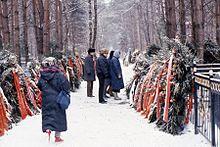 Soon after 21:00 on 14 December 1989, Sakharov went to his study to take a nap before preparing an important speech he was to deliver the next day in the Congress. His wife went to wake him at 23:00 as he had requested but she found Sakharov dead on the floor. According to the notes of Yakov Rapoport, a senior pathologist present at the autopsy, it is most likely that Sakharov died of an arrhythmia consequent to dilated cardiomyopathy at the age of 68.[57] He was interred in the Vostryakovskoye Cemetery in Moscow.