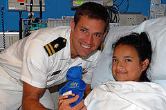 Upon graduation, he was commissioned an ensign in the United States Navy and received a four-year Navy Health Professions Scholarship to attend the University of California, San Francisco School of Medicine, receiving his M.D. in 2003.[8] He subsequently completed an internship in general surgery at the Naval Medical Center San Diego, in 2004, and was a medical officer for Naval Special Warfare Group Three in Coronado from June to December 2004. He completed the Navy Undersea Medicine Training Institute and Navy Dive School in June 2005. In July 2005, he was given a three-year assignment as a member of the Navy Medical Corps to serve as Diving Medical Officer for Mobile Diving and Salvage Unit One in Pearl Harbor, Oahu, Hawaii.