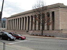 With his top priority of tax reform accomplished, Mellon increasingly turned over management of the Treasury Department to his deputy, Ogden L. Mills.[71] After the 1926 elections, Mellon and Mills sought to cut the corporate tax and fully repeal the estate tax. The Revenue Act of 1928 did indeed cut the corporate tax, but the estate tax was left unchanged.[72] Mellon also focused on the construction of new federal buildings, and his efforts led to the construction of several buildings in the Federal Triangle.[73] In 1928, Mellon stated that "in no other nation, and at no other time in the history of the world, have so many people enjoyed such a high degree of prosperity or maintained a standard of living comparable to that which prevails throughout this country today."[74]