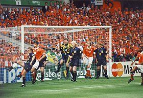 After the 1990 World Cup, Goram established himself as Scotland's first-choice goalkeeper. He played in all eight of Scotland's qualifying ties for Euro 1992, helping them qualify for the finals of the tournament held in Sweden.[36] Scotland were unfortunate to find themselves draw in a group with the Netherlands and Germany and lost both games, but won their final group match 3–0 over the CIS (former Soviet Union). Despite failing to progress from the group, Scotland turned in impressive performances and Goram further enhanced his reputation as an outstanding goalkeeper.[28][36]