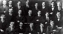 1919 saw the foundation of the Tredegar Labour Party and Bevan was selected as one of four Labour delegates to contest the West Ward in the Tredegar Urban District election. Although he was defeated, he gained attention from his peers and he won a scholarship to the Central Labour College in London, sponsored by the South Wales Miners' Federation. There, he spent two years studying economics, politics and history. He read Marxism at the college and was a brief follower of Noah Ablett,[11][12] developing his left-wing political outlook. Reciting long passages by William Morris with the help of an elocution tutor, Bevan gradually began to overcome the stammer that he had suffered with since childhood.[11] Bevan remained at the College until 1921, attending at a time when a number of his contemporaries from South Wales, including Jim Griffiths, were also students at the College. However, some historians have questioned how influential the College was on his political development. He was not, apparently, one of the most diligent students, and found it difficult to follow an organised routine, including getting up early for breakfast.[13]