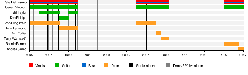 - Pete Helmkamp – bass, vocals (1995–2000, 2006–2009, 2015–2017)