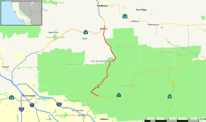 Map of southern California with Angeles Forest Highway highlighted in red | |