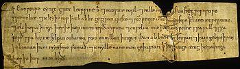 The term charter covers a range of written legal documentation including diplomas, writs and wills.[1] A diploma was a royal charter that granted rights over land or other privileges by the king, whereas a writ was an instruction (or prohibition) by the king which may have contained evidence of rights or privileges. Diplomas were usually written on parchment in Latin, but often contained sections in the vernacular, describing the bounds of estates, which often correspond closely to modern parish boundaries. The writ was authenticated by a seal and gradually replaced the diploma as evidence of land tenure during the late Anglo-Saxon and early Norman periods. Land held by virtue of a charter was known as bookland.