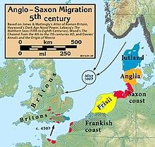 The end of Roman rule in Britain led to the withdrawal of the Roman armies in the late fourth and early fifth century.[1] By the mid-fifth century, an influx of Germanic peoples arrived in England, many leaving overcrowded native lands in Northwestern Europe and others fleeing rising sea levels on the North Sea coast.[2] The middle of the fifth century marked the beginning of the Anglo-Saxon era in England.[3]
