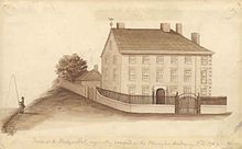 In September 1785, the Barbaulds left Palgrave for a tour of France. By this time Rochemont's mental health was deteriorating and he was no longer able to carry out his teaching duties.[36] In 1787, they moved to Hampstead, where Rochemont was asked to serve as the minister at what later became Rosslyn Hill Unitarian Chapel. It was here that Barbauld became close friends with Joanna Baillie, the playwright. Although no longer in charge of a school, the Barbaulds did not abandon their commitment to education; they often boarded one or two pupils recommended by personal friends.[37] Barbauld lived on Hampstead's Church Row in the early 1800s, though it is not known exactly which house she occupied.[38]