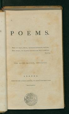 - 1792: Poems. A new edition, corrected. To which is added, An Epistle to William Wilberforce (London: J. Johnson)[93]