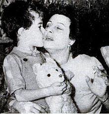 Magnani had a love affair with the actor Massimo Serato, by whom she had her only child, a son named Luca.[8] Magnani's life was struck by tragedy when Luca, who was born after her separation from Alessandrini, came down with crippling polio at only 18 months of age. He never regained use of his legs. As a result, she spent most of her early earnings for specialists and hospitals. After once seeing a legless veteran drag himself along the sidewalk, she said, "I realize now that it's worse when they grow up", and resolved to earn enough to "shield him forever from want".[5]