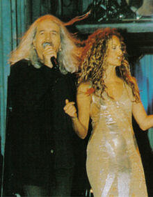 In the early 1990s, she continued performing around Greece with Nikos Karvelas, with appearances at "Diogenis Palace" and then at "Rex". In November 1991, Vissi and Karvelas starred in the first Greek rock opera, Daimones ("Demons").[14] Vissi described it as an "artistic achievement" in her career; however, the play received mostly negative reviews from professional critics and contributed to the relatively unsuccessful period Vissi faced in the early 1990s.[16][17] A year later, in October 1993, Vissi landed the leading role of Aphrodite, in the one-act opera Ode to the Gods by Stavros Sideras.[12] It was held only once in Limassol, Cyprus, during the celebrations for the Commonwealth Day. Over the following years, Karvelas and Vissi released the albums Lambo (1992), Emeis (1992), Live! (1993), Re! (1994), and O! Kypros (1995), an album with traditional Cypriot songs.[14]