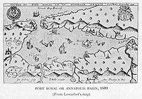 The Annapolis River's importance in history is evident through its use as a transportation corridor in early Acadia after Samuel de Champlain and Pierre Dugua, Sieur de Monts established the Habitation at Port-Royal on the north bank of the river's mouth in 1605. Champlain's map of 1609 showed the river as being named Rivière du Dauphin.