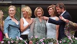 For the 2004 semi-final of the Eurovision Song Contest, staged in Istanbul thirty years after ABBA had won the contest in Brighton, Lyngstad appeared in a special comedy video made for the interval act, entitled Our Last Video. All four members of the group appeared briefly in cameo roles, as did the singer Cher and British comedian Rik Mayall amongst others. The video was not included in the official DVD release of the Eurovision Contest, but was issued as a separate DVD release on the Universal Music label. It was billed as the first time the four had worked together since the group split in 1982 although they each filmed their appearances separately. Also in 2004, Lyngstad appeared with former bandmates Benny Andersson and Björn Ulvaeus in London at the fifth anniversary performance of Mamma Mia!, the musical based on ABBA songs. In 2008, she joined all three of her former ABBA colleagues at the Swedish premiere of Mamma Mia! at the arena Cirkus in Stockholm.